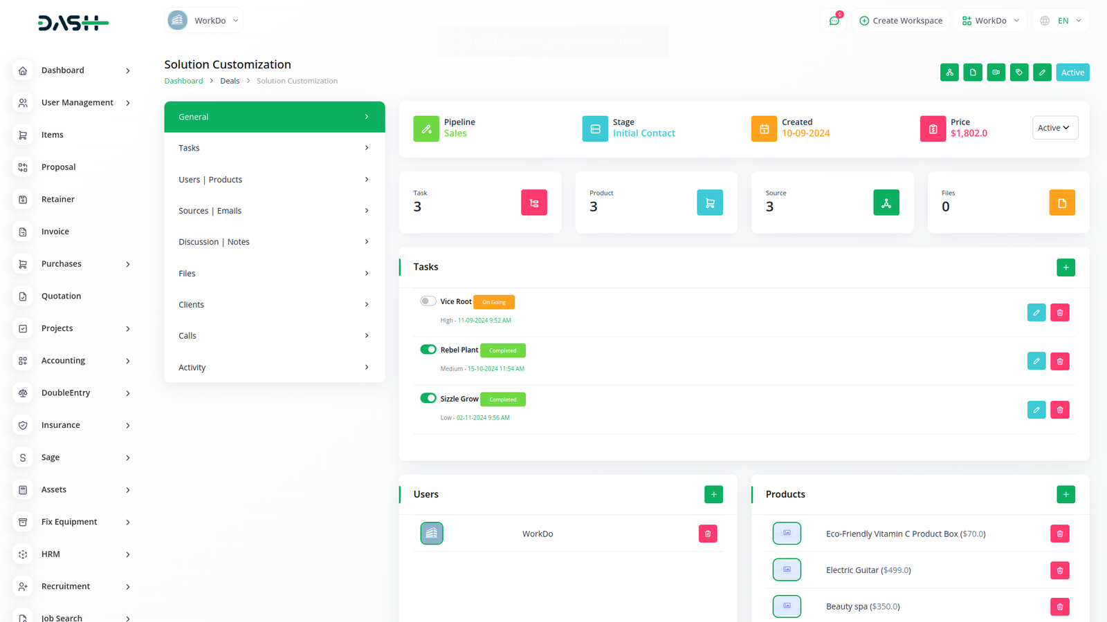 Gain a comprehensive, actionable analysis of your leads, negotiations, users, and finances within a single interactive dashboard. Design and execute high-impact business strategies, manage deal limits, and configure flexible payment options to maintain complete control over your growth.