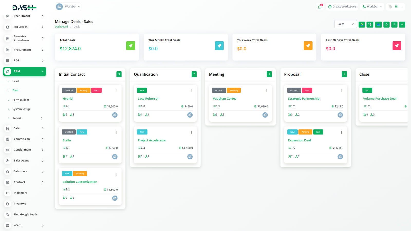 Evaluate every business metric through an intuitive and modern interface. Generate actionable insights to drive sales growth, and manage your lead pipeline effortlessly using a smooth, responsive drag-and-drop system designed for maximum efficiency.
